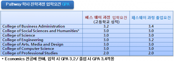 *학사, 석사 패스웨이 졸업요건